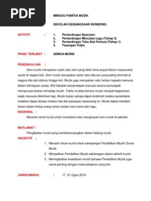Kertas Kerja Panitia Muzik 2021 Pdf. View kertas kerja pertandingan karaokedocx from COM MISC at University Malaysia Sarawak. 0 PENDAHULUAN Program ini adalah satu program yang dianjurkan oleh Panitia Sains dan Matematik Sk Ranau.